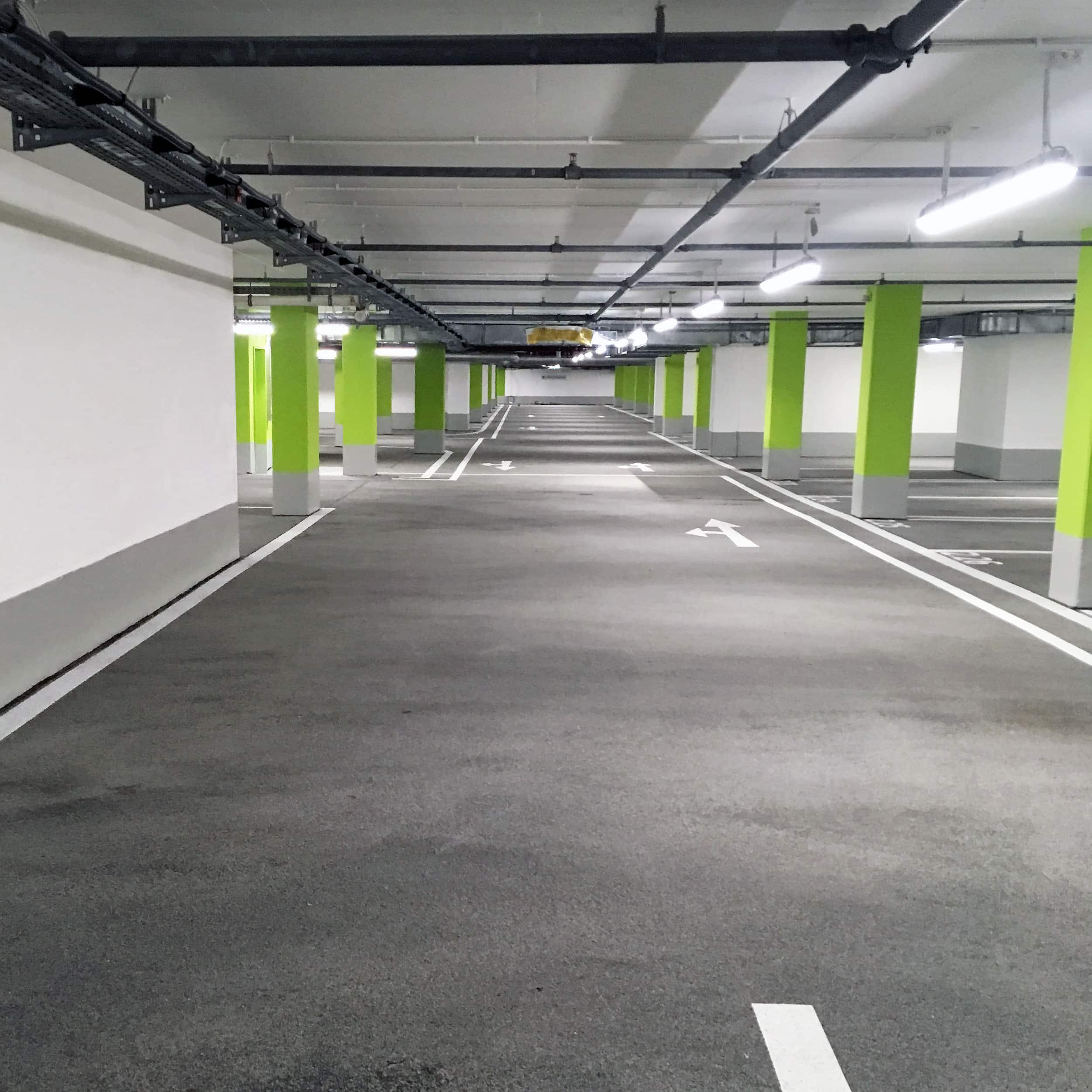 Der im Oktober 2003 eröffnete Gebäudekomplex Maximilianhöfe befindet sich in der Innenstadt von München in unmittelbar Nähe zum Opernhaus sowie dem Residenztheater. Im Untergeschoss des Gebäudes befindet sich eine in Ortbetonbauweise errichtete Tiefgarage, die sich über drei Etagen erstreckt und die nach einer Nutzung von mehr als 10 Jahren einer ersten großen Instandsetzungsmaßnahme unterzogen wird. Im Wesentlichen ist der Chlorideintrag in tragende Betonbauteile Ursache für Korrosionsaktivität am Bewehrungsstahl, der bereits im frühen Stadium durch eine fachgerechte Instandsetzung begegnet werden soll. Im Rahmen einer funktionalen Ausschreibung ist für die Bodenplatte sowie für den Wandsockel im dritten Untergeschoss der Einsatz eines kathodischen Korrosionsschutzsystems (KKS-Systems) geplant, wobei mischoxidbeschichtete Titanbandanoden zum Einsatz kommen, die an aufgehenden Bauteilen in KKS-geeignetem SPCC und auf der Bodenplatte in KKS-geeignetem PCC eingebettet werden